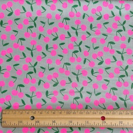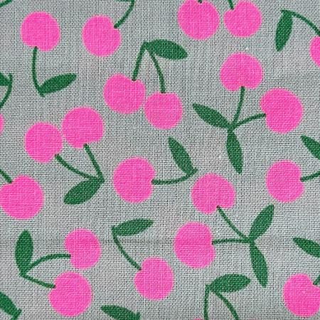 グレー地にサクランボのプリントです。